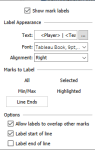 To get different dimensions and measures at each end of the line, I set-up the labels for each Measure Value pill separately. The logic to labeling a single end of a line is a little different than labeling only one of the two circles. I’ll add additional details in the near future; but for now, I’ve included some screen shots that should get you there if you are attempting to duplicate or follow along.